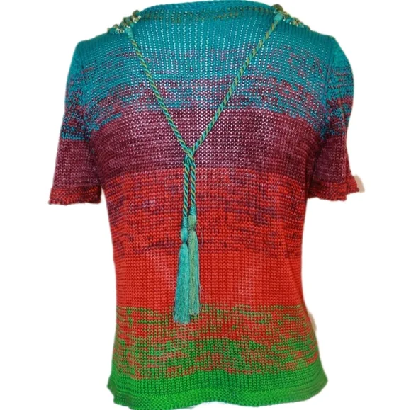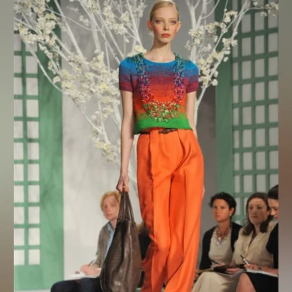 $2,200 OSCAR DE LA RENTA SILK BEADKNIT ART RUNWAY TOP BLOUSE SGORGEOUS Oscar de la Renta exclusive beautiful piece of art- multi color pure silk knit exclusively bead embroidered.Oscar de la Renta fine craftsmanship when you just want the best. A beautiful piece of art for collectors. PLEASE SEE PICTURES FOR THE BEAUTIFUL DETAILS.This listing is for the blouse only.SIZE SPlease go by measurement:BUST: 32" plus strechLENGTH: 24"Fabric Content: 100% silk and exclusive silk Bead embroidery Excellent clean condition. No issues.Guaranteed to be 100% authentic.Retail est. $2,200SEE MORE BEAUTIFUL DESIGN IN OUR OTHER LISTINGS - SEE LAST PICTURE.BPAT F 1272